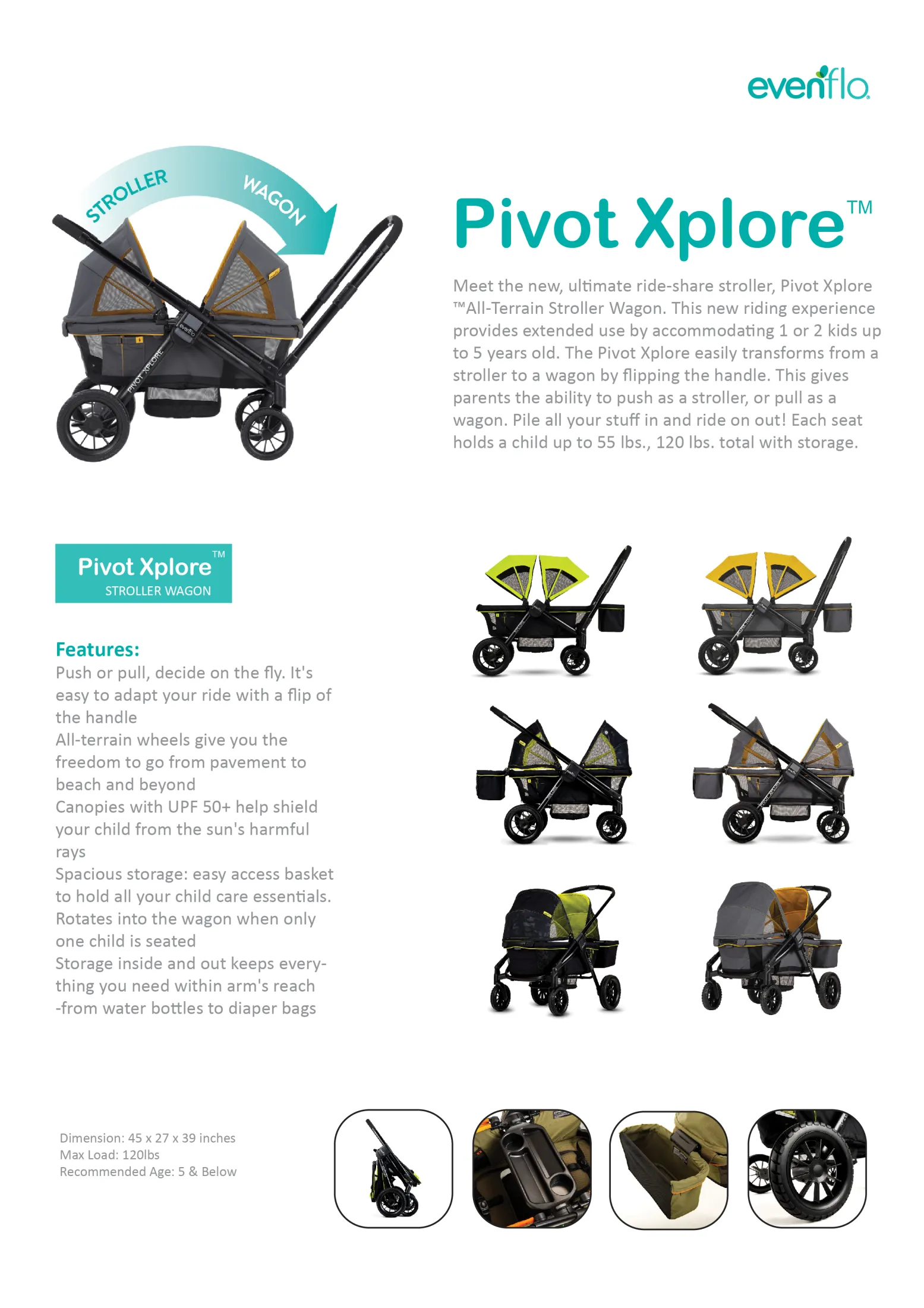 The Pivot Xplore easily transforms from a stroller to a wagon by flipping the handle. Strollers Pivot Xplore All-Terrain Stroller Wagon. Traveling with a new or growing baby just got easier thanks to Evenflos Pivot Xpand Modular Stroller.